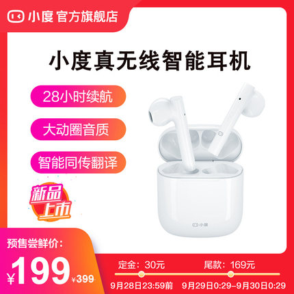 小度真无线智能耳机,单只耳机仅重4.1g,小巧便携,采用半入耳式设计,完美贴合耳部轮廓,佩戴起来更加舒适牢固。双核蓝牙5.0,更稳定,延迟更低。拥有28小时超强续航能力,单次充电即可工作7小时,搭配充电仓至少可为耳机续充3次,超长续航给力一整天。搭载13mm大动圈单元,搭配生物碳纤维振膜,韧性、瞬态、动态出色释放好音质。专业级EQ调教,低频丰满浑厚,中频柔和自然,高频明亮清透,均衡自然。 小度真无线智能耳机,拥有强大的AI语音助手功能,搭配小度APP,无论是查路线、问天气、听新闻、查百科资讯等,用户只需要双击耳机或呼唤一声“小度小度”,即可唤醒个人专属AI语音助手。