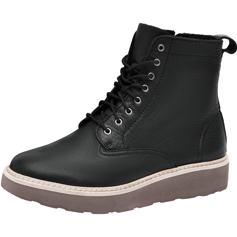Clarks其乐女鞋年秋冬Trace Pine英伦风松糕厚底机车靴马丁靴系带时尚 黑色261437284 37.5