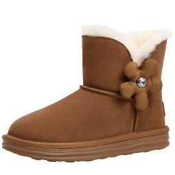 百丽可爱小花雪地靴女2022冬新减龄短靴B0940DD2 棕色-毛里 37