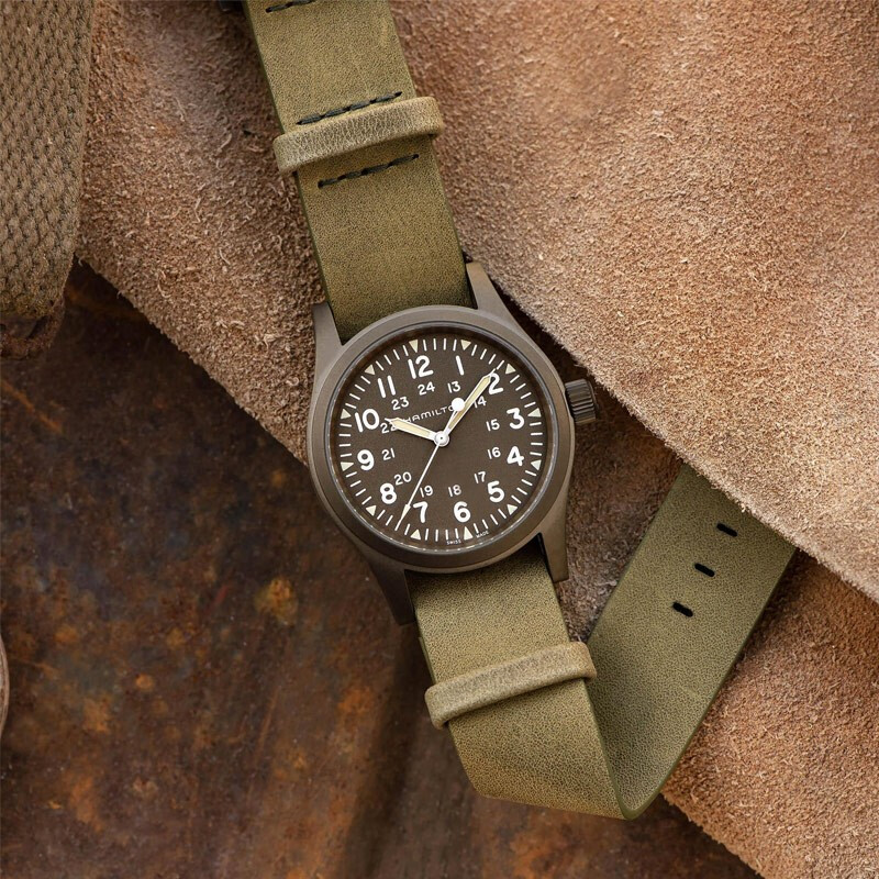 汉米尔顿(HAMILTON) 瑞士手表 卡其野战系列皮带机械男士腕表 皮带棕盘