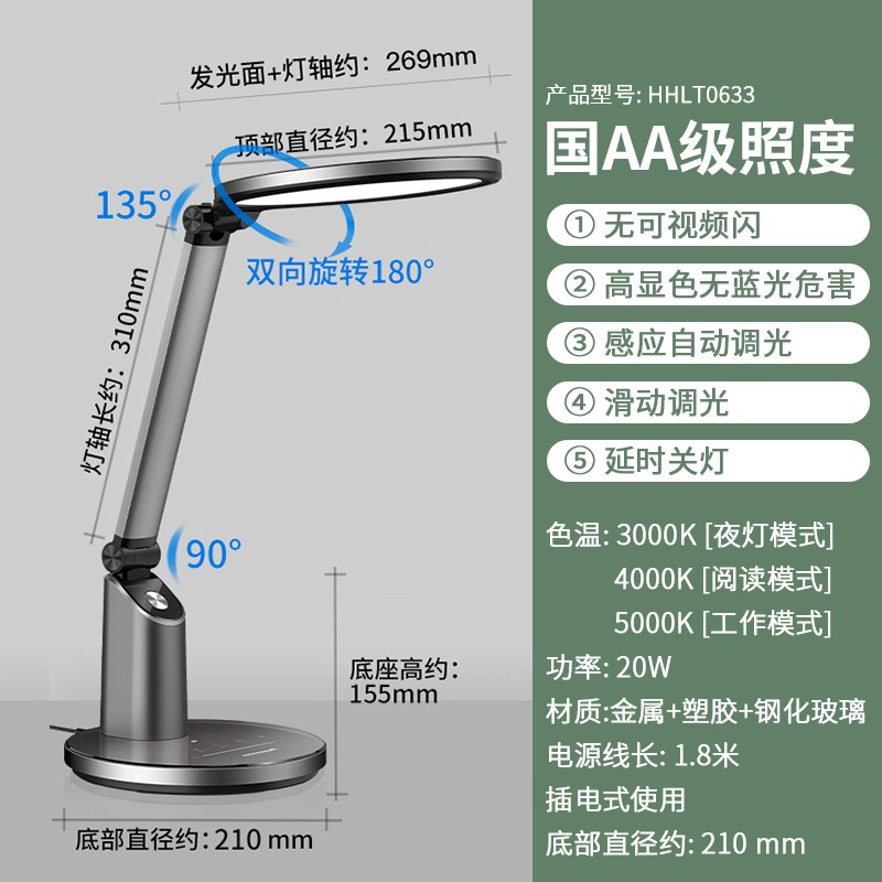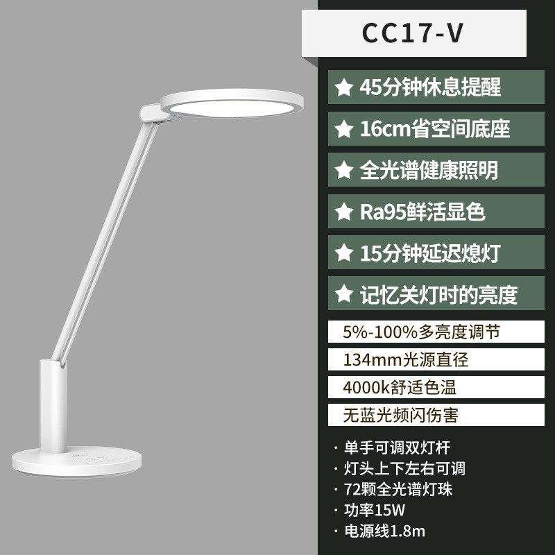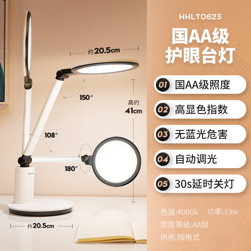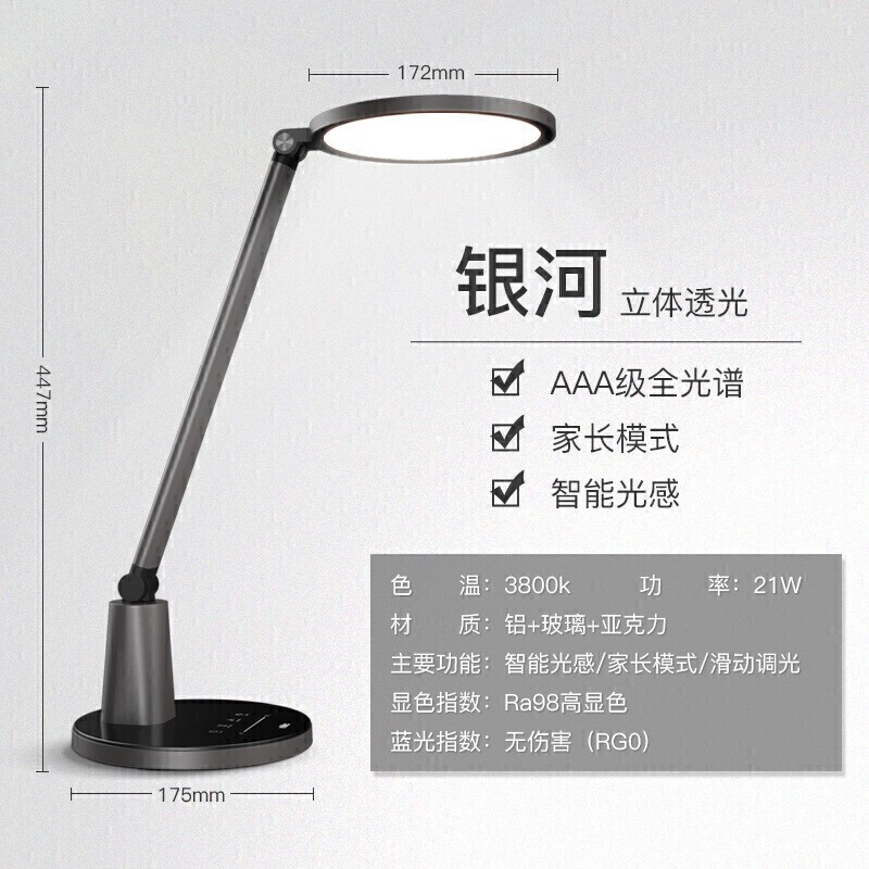 Panasonic这款致巡护眼台灯,AA级照度,舒适延缓疲劳,168颗灯珠,柔光寿命长,RG0无蓝光危害,18.5cm光源面积,舒适侧发光光源,覆盖约2米桌面,磨砂表面,RA≧95,色彩还原真实,特质钢化玻璃工艺,均匀磨砂表面,增加立体感。多功能触控与酷炫滑动,让您的指尖轻松掌控亮度。拥有工作、阅读、延时关灯、自动调光、夜灯多种功能模式,环境亮度感应装置使注意力不再被动分散。恒流模拟调光技术,通过保证电流的稳定性让台灯在高亮度或低亮度时都能杜绝闪频。功率:20W,光通量:700LM。 阅读全文 -