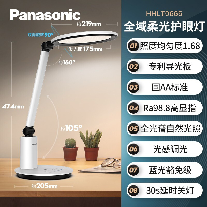 松下(Panasonic)台灯学习护眼灯 全光谱护眼台灯儿童学生学习防蓝光国AA级台灯 致皓导光板升级 HHLT0665