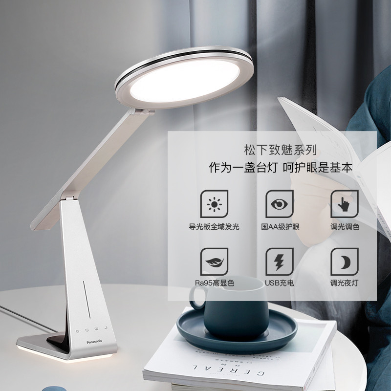 松下(Panasonic)工作台灯导光板护眼台灯 儿童台灯学习无蓝光危害频闪国AA级护眼灯带小夜灯 致魅银