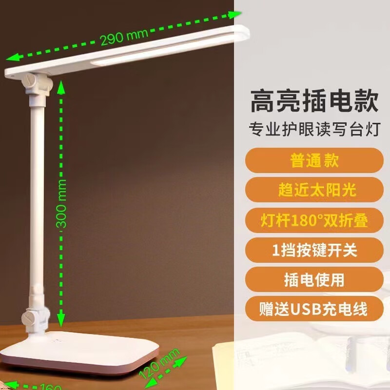 视贝(SEEBEST) 视贝seebest 台灯LED减蓝光儿童学习阅读灯触控三色调光卧室宿舍学生用 【高亮插电款】一按键开关