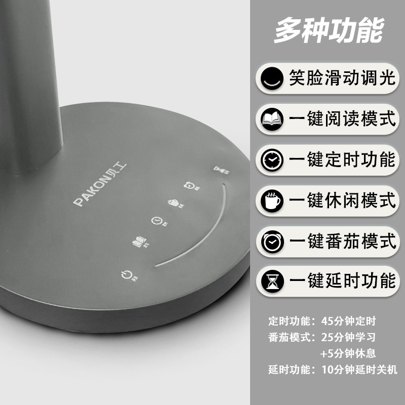 此款带智能功能的充电灯,模拟课堂时间45分钟定时休息提醒,按下定时休息按钮,45分钟时,呼吸灯闪烁三次,提醒休息。小巧体型,大小桌子都不限,直径160mm小巧底座,如妈妈的手掌大小。多转向转轴,方向随调,精准照明灯头上下90°,左右50°可调。 阅读全文