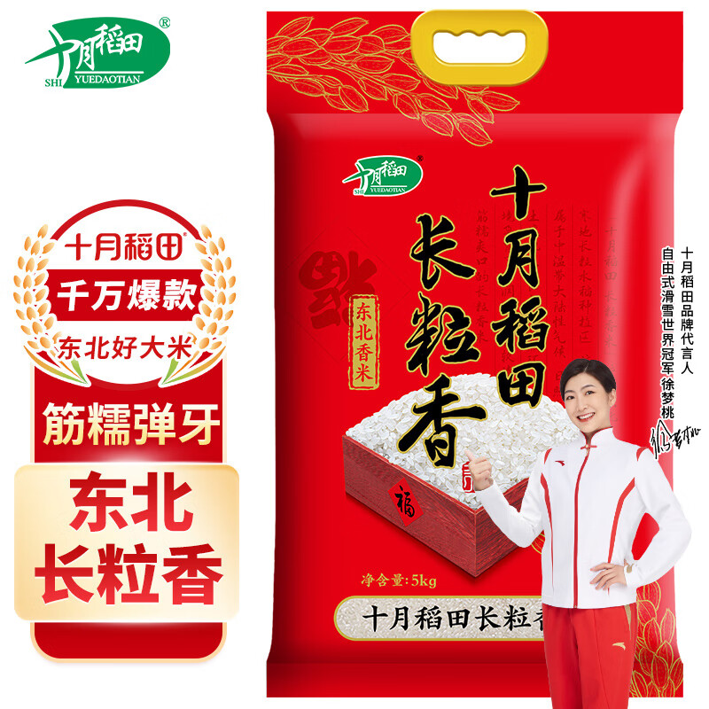 【2022年新米上市】十月稻田 长粒香大米5kg 东北大米10斤 粳米 双层真空包装