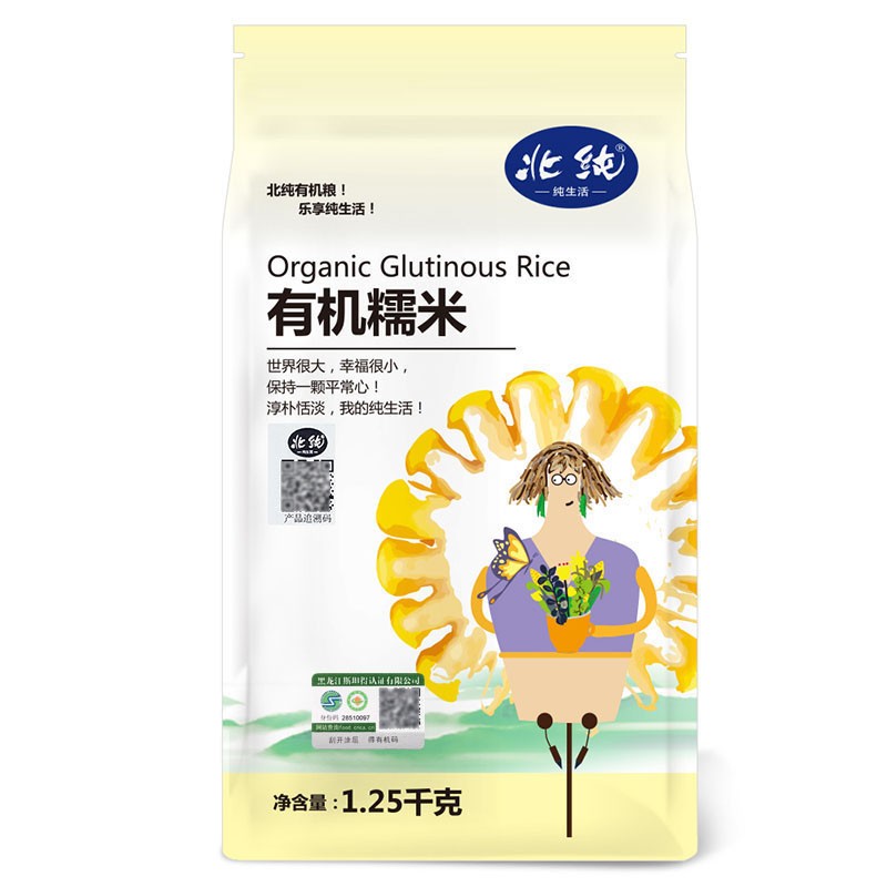 北纯 有机 糯米1.25kg(江米 黏米 粽子米 粗粮杂粮 真空包装)