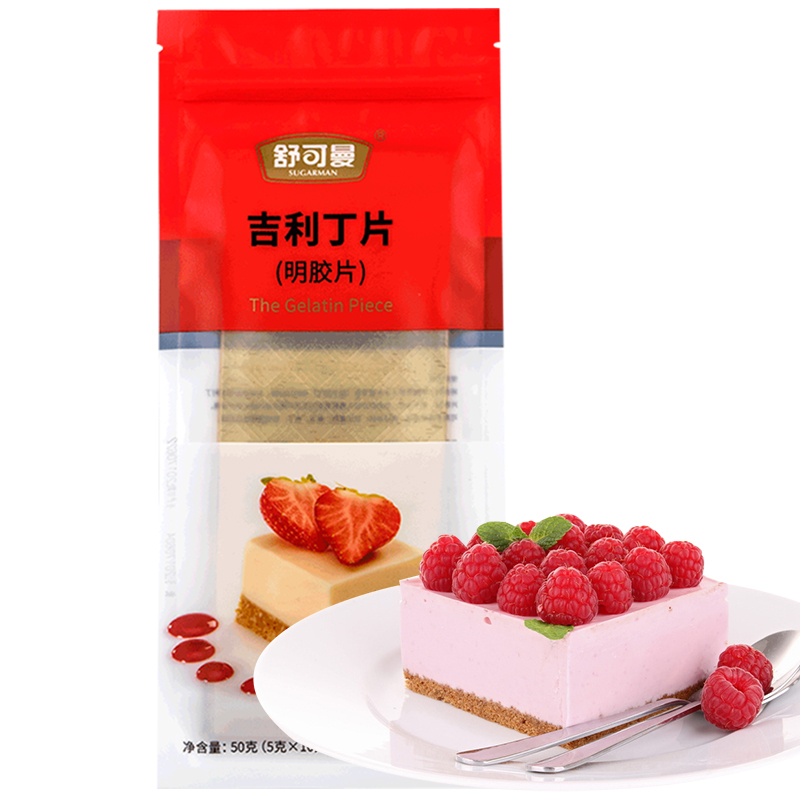 舒可曼 吉利丁片 烘焙原料 食用明胶鱼胶片 果冻布丁慕斯蛋糕 50g/10片