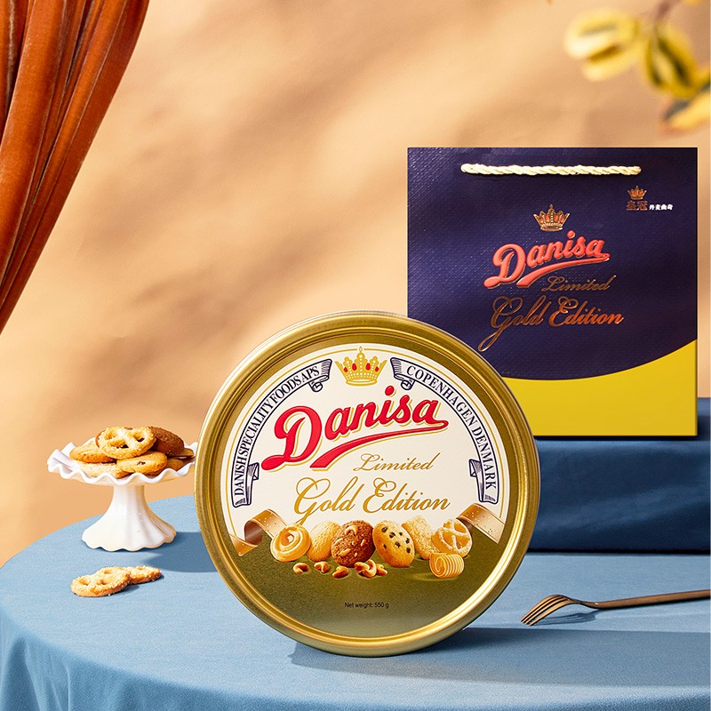Danisa皇冠丹麦曲奇饼干金色主题礼盒550g送礼袋 进口休闲零食早餐食品 550g