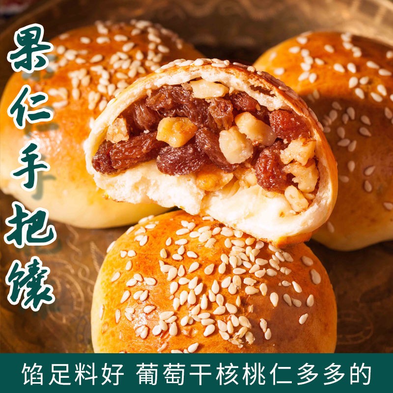 新疆特产烤馕饼果仁手把馕坚果核桃葡萄干红枣枸杞早餐囊点心 果仁手把馕2个