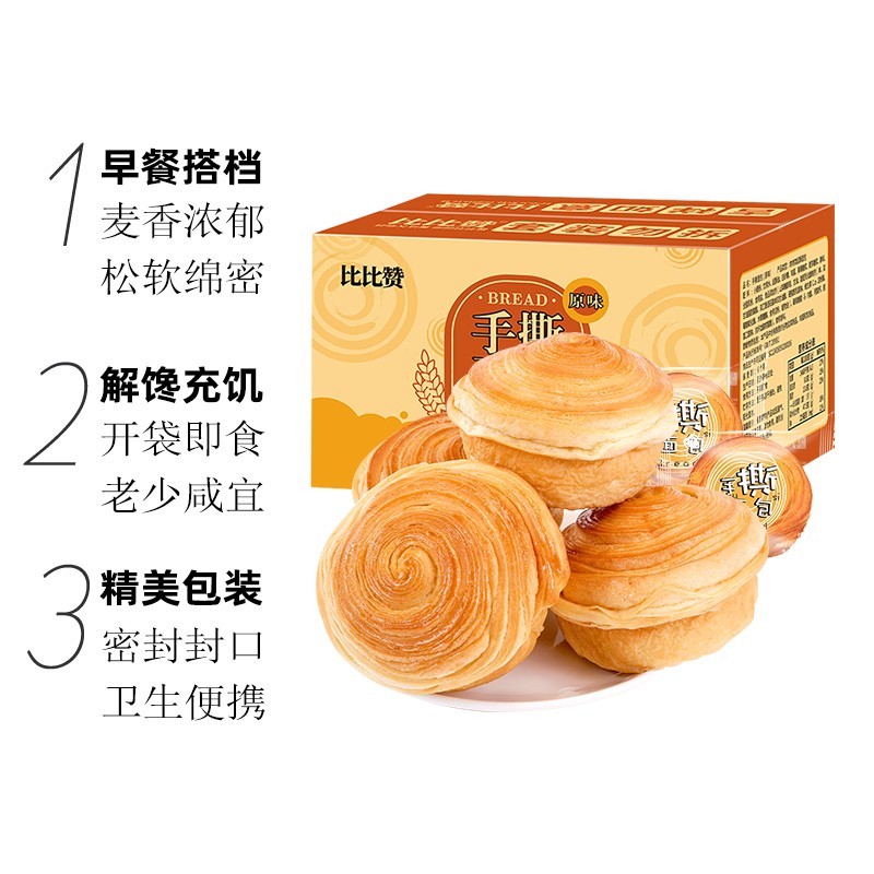 AOJINQI 奥锦奇 手撕面包,手工制作,当天现在,夹心手撕面包,10天短保,口感更佳,味道叠加,层层美味~规格:椰蓉味*3+蛋黄味*3。 阅读全文 -