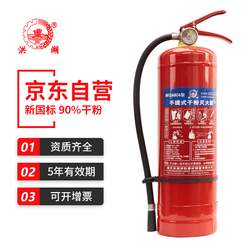 洪湖 干粉灭火器4公斤 手提式家用灭火器 店用商用灭火器干粉灭火瓶4KG 车载大货车用 消防器材MFZ/ABC4