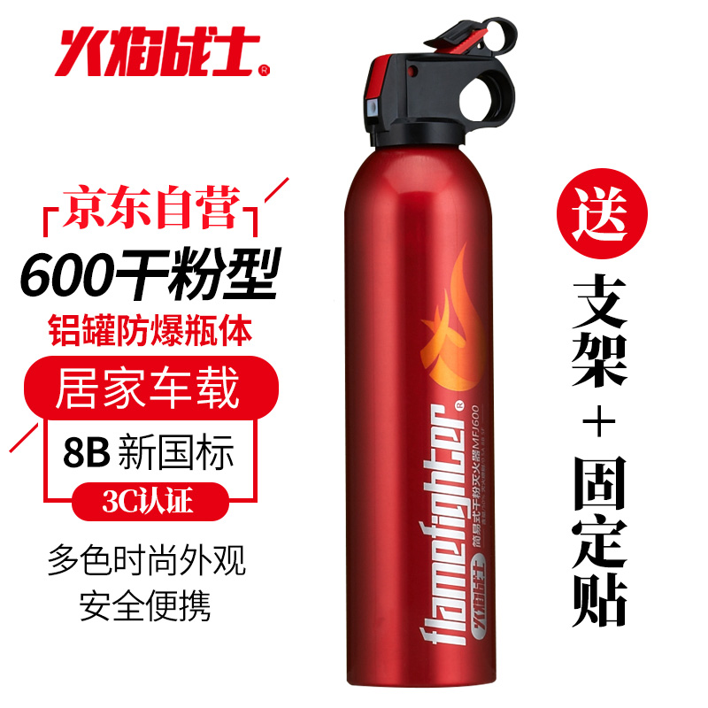 火焰战士 灭火器车载车用家用汽车干粉灭火器 便携小型消防器材灭火器 MFJ600 红色
