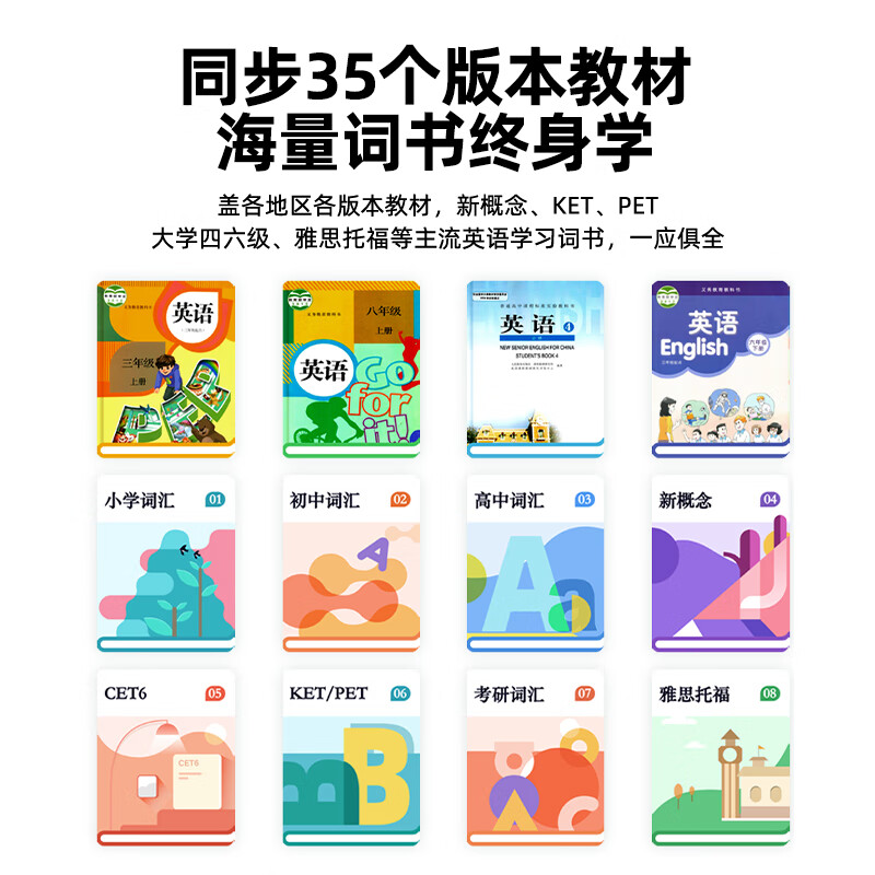 如布科技 K10 电子单词卡严格按照学、练、测多维记忆法制定学习方案更科学,针对难点单词,轻松搞定,使用艾宾浩斯记忆曲线学习,练习重难点单词,针对性强化巩固记忆,及时检测词汇掌握程度和学习效率,摆脱传统死记硬背模式,从认识单词到重点强化再到针对性反复训练记忆,用更科学的多维度记忆法解决“背单词难”的问题。 内置英美双音领读,更地道,发音准学得好,边背边听,刺激听觉神经、视觉神经、触觉神经,让大脑记忆更深刻,结合字母发音规律及联想记忆效率更高;可同时满足扬声器外放&接入耳机两种发声模式,针对不同场景需求,满足不同学习方式;海量云端词书,从小学到考研,一应俱全单词释义丰富、短语例句搭配、近义词记忆,同时可自建专属词书,更精、更准; 内置海量词书之外,还能根据个性化学习需求,通过手机APP进行单词拍照录入,快速添加专属词书;机身轻巧便携,易于装入背包口袋,随时利用碎片时间背单词,2.66吋屏幕,更大尺寸,一目更多行;一次充电可连续学习100天,长时间无操作的情况下,单词卡将自动进入低能耗待机模式按任意键即可再次唤醒。电子墨水屏带来清晰阅读观感,即使在户外使用,也能拥有良好体验,无蓝光不伤眼,减缓视觉疲劳。 阅读全文
