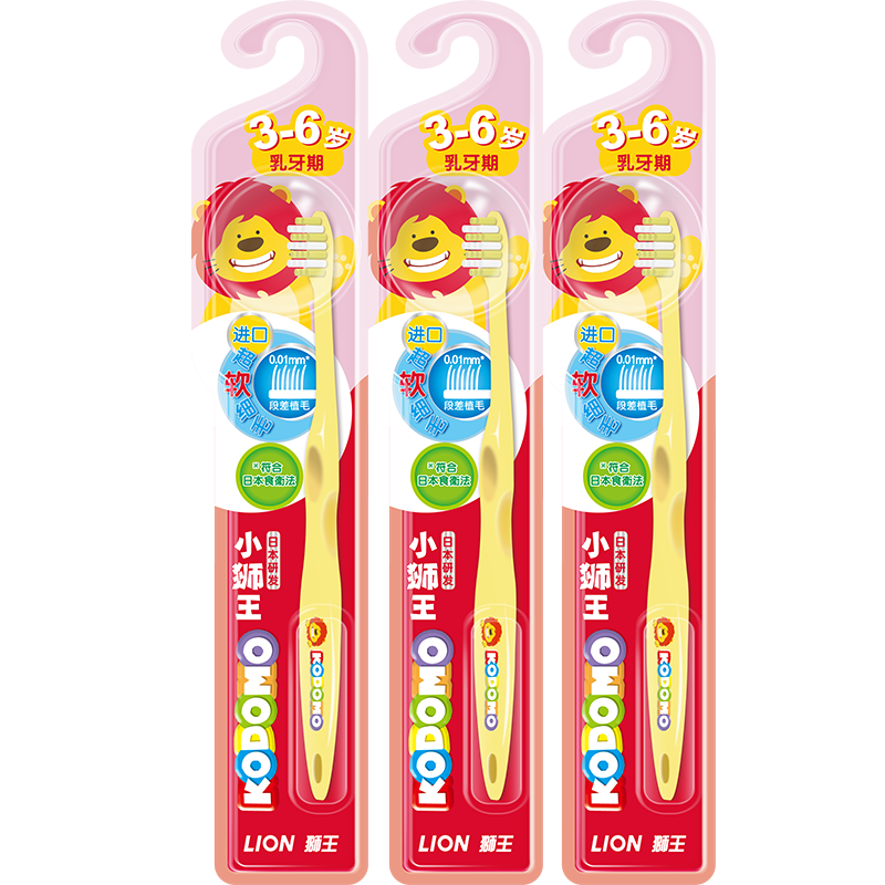 狮王(Lion)小狮王儿童牙刷套装3-6岁*3婴幼儿宝宝软细毛乳牙牙刷(颜色随机)