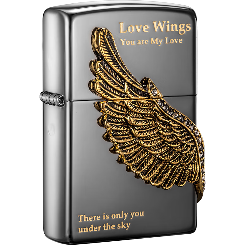 ZiPPO之宝(Zippo)打火机 爱情之翼 黑冰镀黑镍蚀刻ZBT-1-16a 防风火机