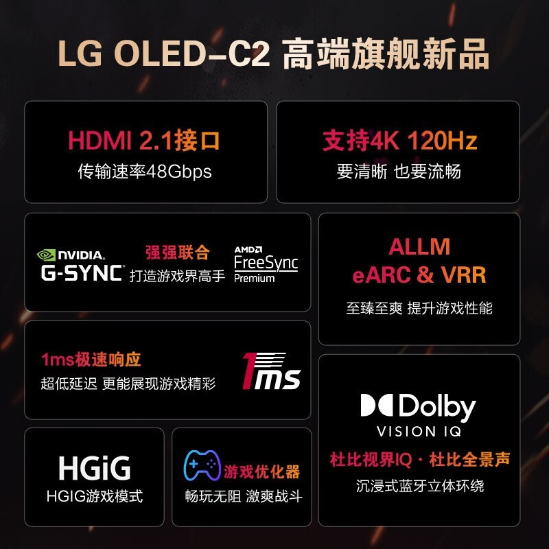 LG OLED42C2PCA 42英寸游戏电视 电竞显示 智能4K超高清全面屏 120hz刷新 G-SYNC HGIG HDMI2.1