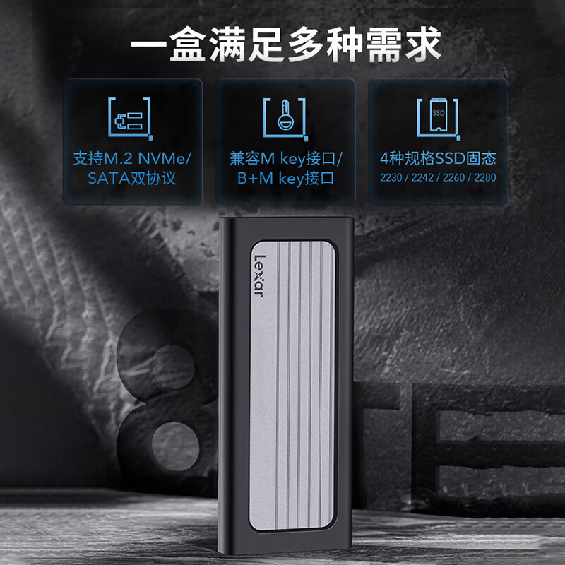 雷克沙(Lexar)M.2 NVMe/SATA双协议移动硬盘盒 Type-C 3.2接口 SSD固态硬盘外置盒 强效散热磁吸收纳设计