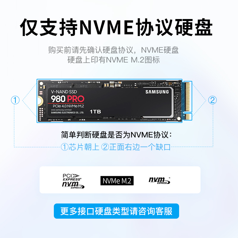 读速560MB/s,全铝合金壳体,M.2 NVMe/SATA双协议。