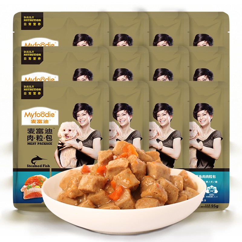 【品牌旗舰店】麦富迪 狗狗零食 狗湿粮肉粒包 清蒸鱼肉95g*12