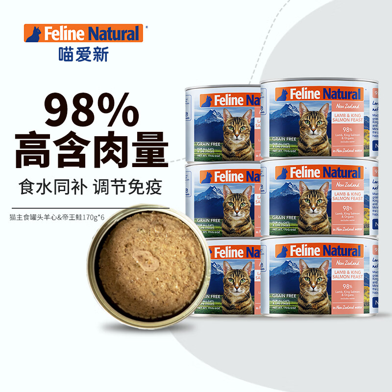 K9 Natural 新西兰原装进口宠物猫零食猫罐头 成幼猫通用主食罐头羊心帝王鲑170g*6