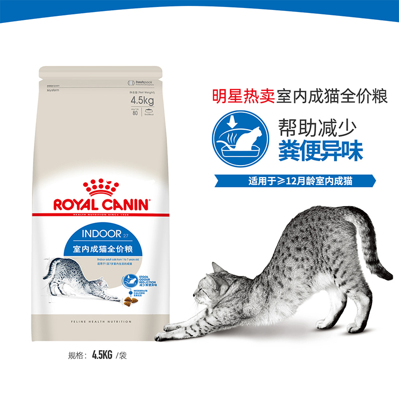 皇家猫粮 室内成猫粮 I27 通用粮 12月以上 4.5KG 高易消化蛋白 维持健康体重