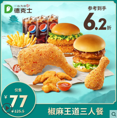 【618狂欢】德克士 椒麻王道三人餐 单次兑换券 参考到手6.2折!