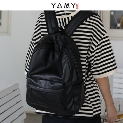 花曦 简约黑色双肩包女皮质软皮书包防水百搭ins背包女双肩大学生 47.00元