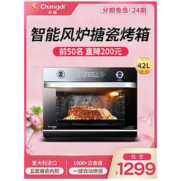 3、送198元赠品礼包 1小时后价格1179元 Changdi 长帝 CRWF42NE 电烤箱,容量达到了42升。采用了电子芯片式控温,5根热管,上下独立温度控制, 提高温度准确性,最高可设置为230℃。通过无极按钮调整温度和选项,正面配有汉显LED屏,显示温度、时间、工作状态等信息。机身内胆和接渣盘均采用了意大利井口的搪瓷内胆,不易沾油,方便清理。三层烤架设计,配备广角照明炉灯和360°旋转烤叉。大功率风机可使热风高速循环,充分加热食物。双层加厚钢化玻璃门,有效防止烫伤。支持低温发酵,空气烤等多项功能。并且还可通过手机app远程控制烤箱工作。