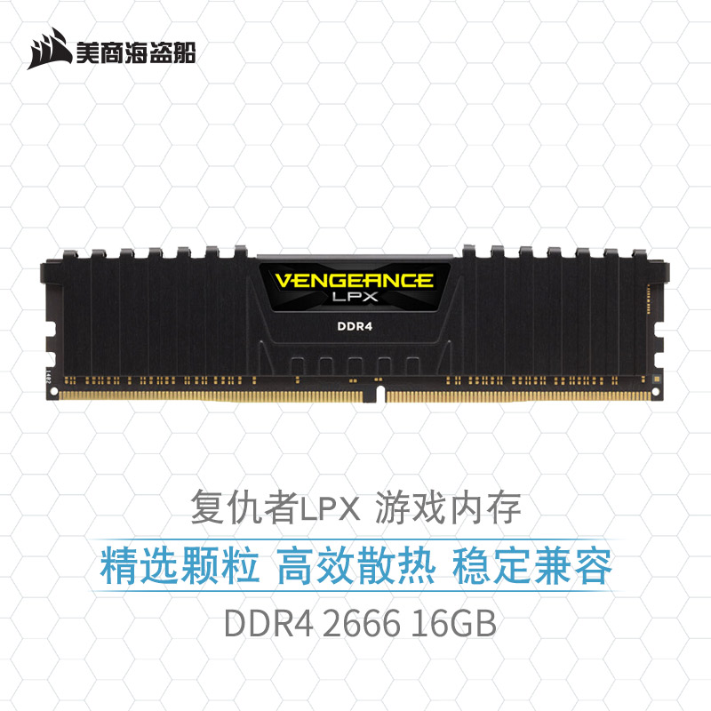 美商海盗船(USCORSAIR) 16GB DDR4 2666 台式机内存条 复仇者LPX系列 游戏型