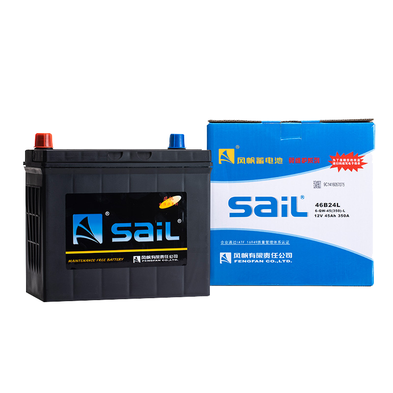 风帆(sail)汽车电瓶蓄电池46B24L-T1 12V细桩头 以旧换新 厂家直发
