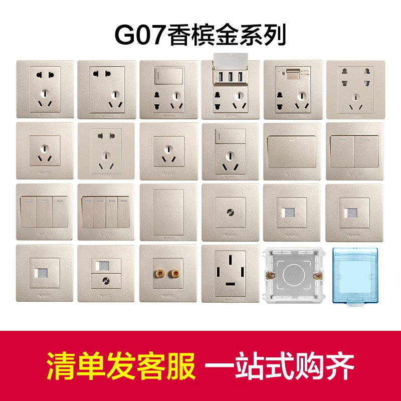 公牛(BULL) 开关插座 G07系列 一位电话插座 86型面板G07T101(U6) 香槟金 暗装