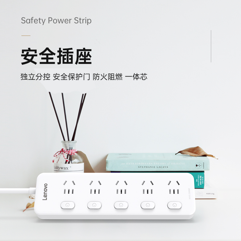 联想(Lenovo)插座/插线板/插排/排插/接线板/拖线板 5位分控全长1.8米独立开关
