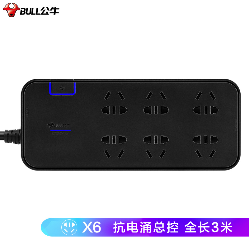 公牛(BULL)抗电涌抗浪涌插座/插线板/插排/排插/接线板/拖线板 6位总控全长3米 保护智能电器 GN-H3060