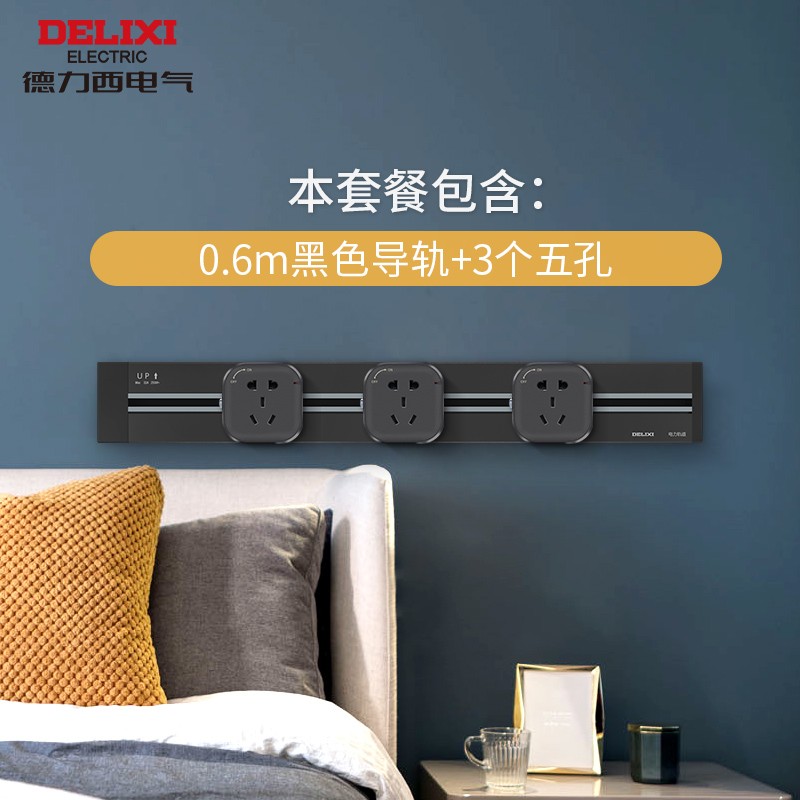德力西(DELIXI)轨道插座可移动壁挂式明装插座无线接线板多功能嵌入式厨房桌面排插 【曜石黑】0.6米轨道+3个五孔