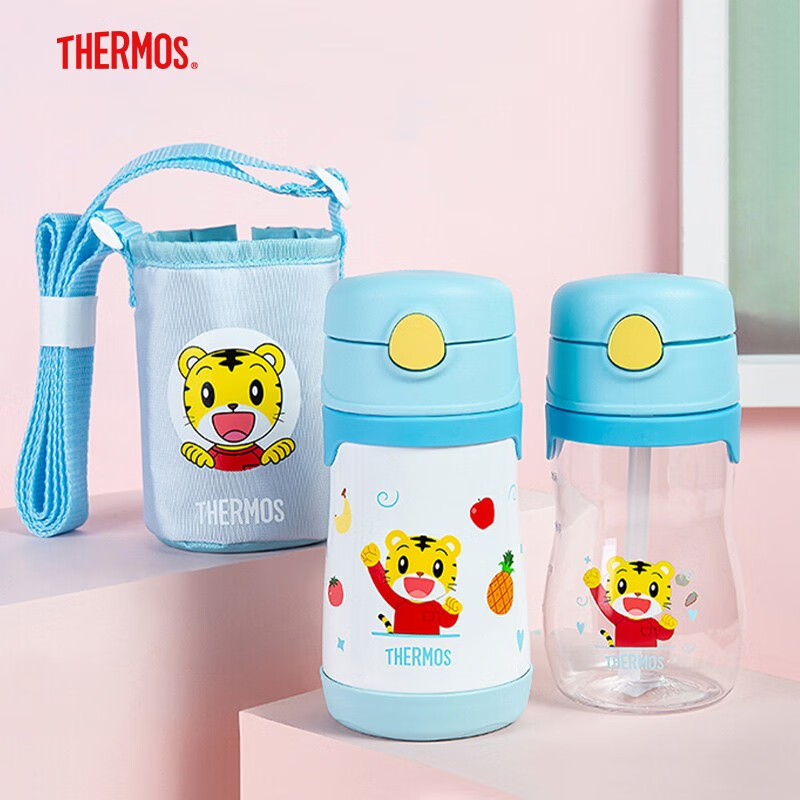 膳魔师Tritan儿童水杯吸管杯夏季儿童水杯带刻度学饮杯宝宝水杯儿童吸管水杯郊游出行杯 【礼盒装】梦幻蓝(杯套通用)