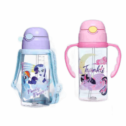 小马宝莉(MY LITTLE PONY)儿童吸管水杯Tritan吸管水杯带背带两用儿童吸管杯手柄水壶带刻度 紫色粉柄380ML手柄背带两用水杯