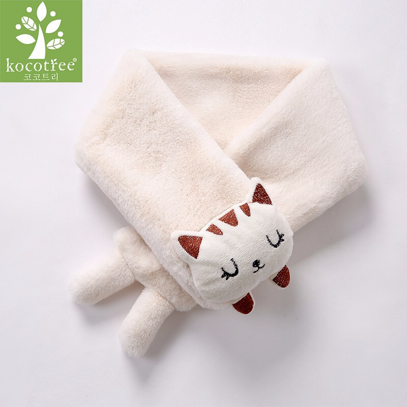 【捡漏价】kocotree儿童围巾小女孩秋冬宝宝围脖保暖男女童韩版防风毛绒幼儿可爱脖套 米白猫咪
