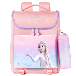 迪士尼(disney)小学生书包女1-3年级减负护脊艾莎公主书包一体开合易清理女童书包 FP8557A粉橙色