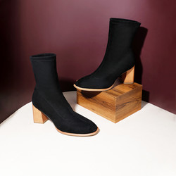 奥康女鞋切尔西靴女英伦风烟筒靴秋冬季增高粗跟短靴子瘦瘦靴黑色 159元