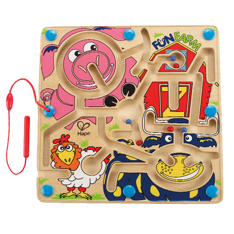 Hape迷宫玩具 木质磁性立体运笔走珠迷宫亲子互动早教启智24M+男女小孩儿童礼物 E1702快乐农场迷宫