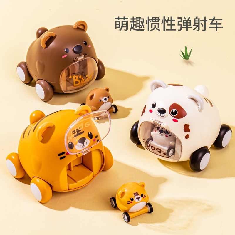 弹射车儿童男孩小汽车女孩3宝宝惯性动物老虎子母按压玩具车2-4岁 【小虎】萌趣子母弹射车