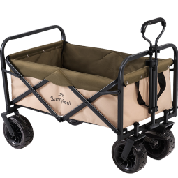 sunnyfeel山扉露营车可折叠户外小推车自驾游野餐车沙滩营地车买菜便携推车 军绿色大号 8寸越野宽轮丨双刹车