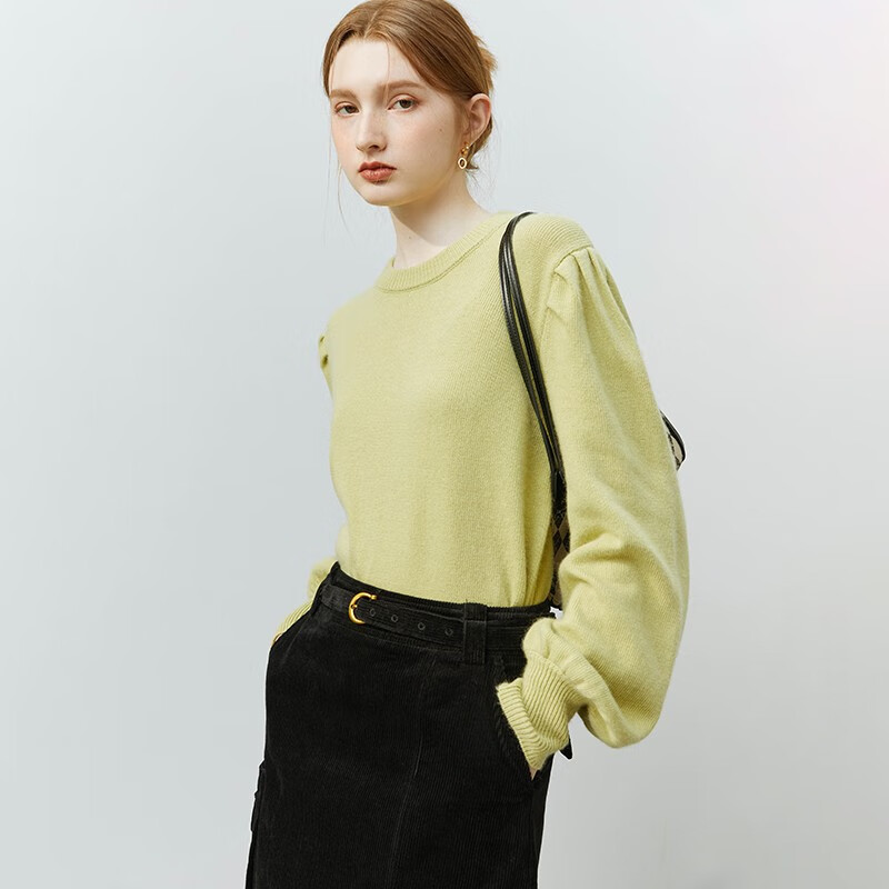 范思蓝恩22FS4196甜桃乳酪粉色泡泡袖圆领毛衣女秋冬洋气针织衫 倾心粉 M