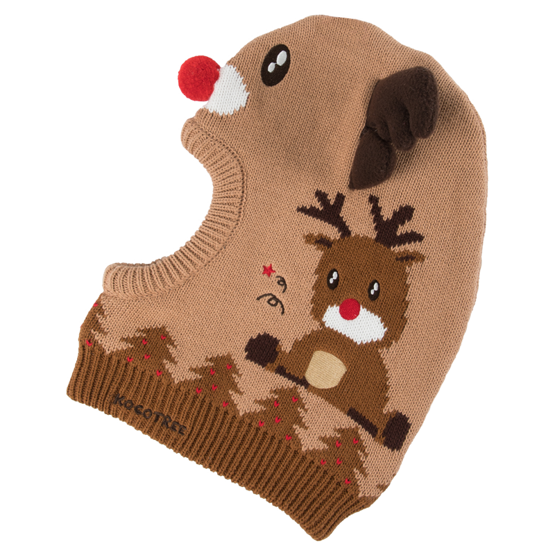 kocotree儿童帽子秋冬男童女童围巾围脖护耳一体帽婴幼儿宝宝防风保暖 红色麋鹿【单帽子】 S【建议6个月-4岁】
