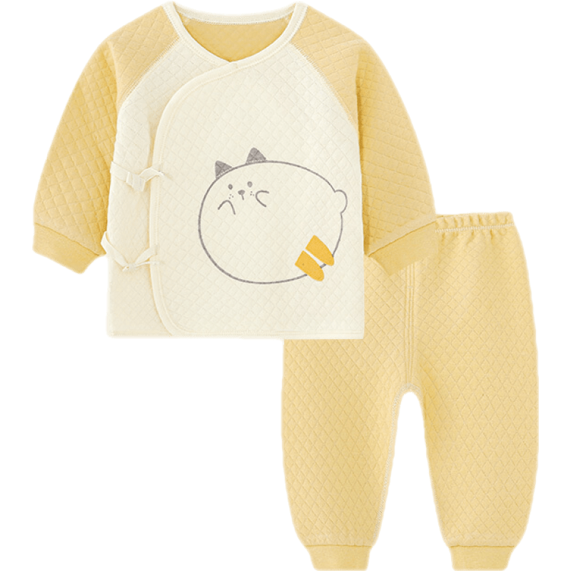 皮偌乔婴儿和袍套装春秋季宝宝长袖保暖两件套初生儿纯棉衣服 和袍可拆裆套装-黄色(预售10.8号发货) 59cm(59cm)