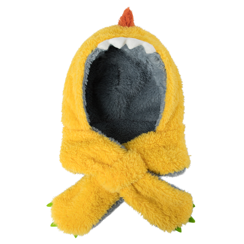 kocotree儿童帽子秋冬季韩版男童女童宝宝护耳可爱保暖婴幼儿婴儿围脖一体 黄色恐龙插片(帽子-两面带) M【帽围:50-54cm】