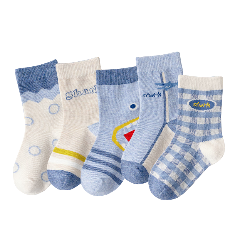 KK树儿童袜子男童女童春秋卡通小孩棉袜宝宝中筒袜 海洋鲨鱼(五双装) M码:建议4-6岁;脚长14-16cm