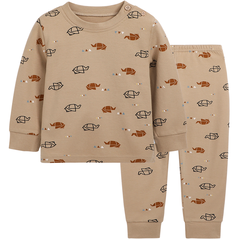 小狗比格儿童睡衣男秋衣秋裤纯棉宝宝内衣套装女春秋衣服 5836米黄(店长推荐) 80cm建议12-18个月