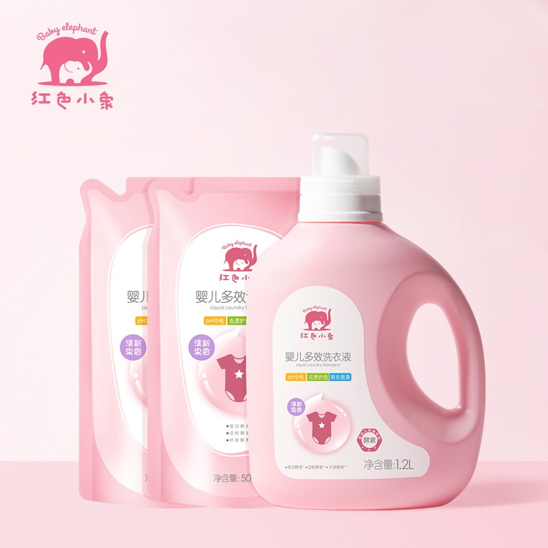 红色小象 婴儿洗衣液 儿童洗衣液0-12个月 去渍去污家庭清洁 婴儿多效洗衣液(1.2L+500ML*2)